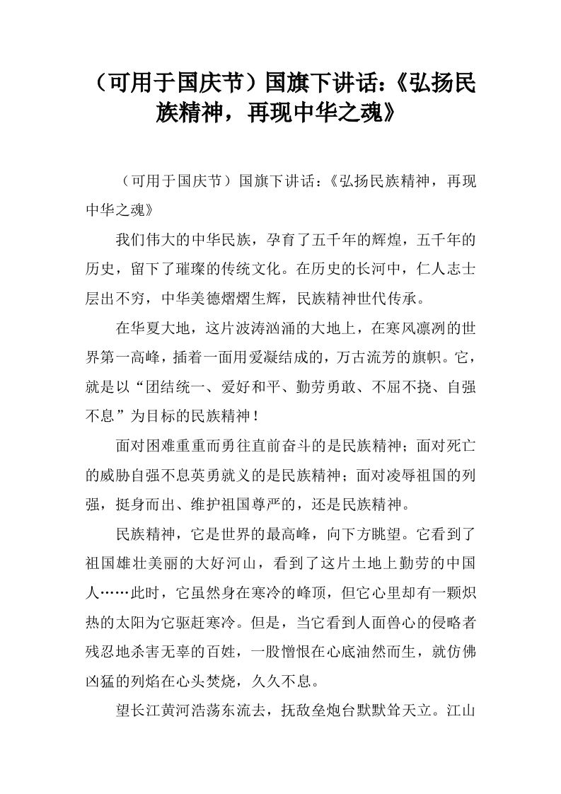 (可用于国庆节)国旗下讲话:《弘扬民族精神,再现中华之魂》[推荐] 12-18 国旗下讲话 11 ——预览已结束,还剩2页未读——开通会员后可免费下载高清完整文档 资源下载此资源下载价格为15米,VIP免费,请先登录 资源下载下载价格15 米VIP免费请先登录 0 0