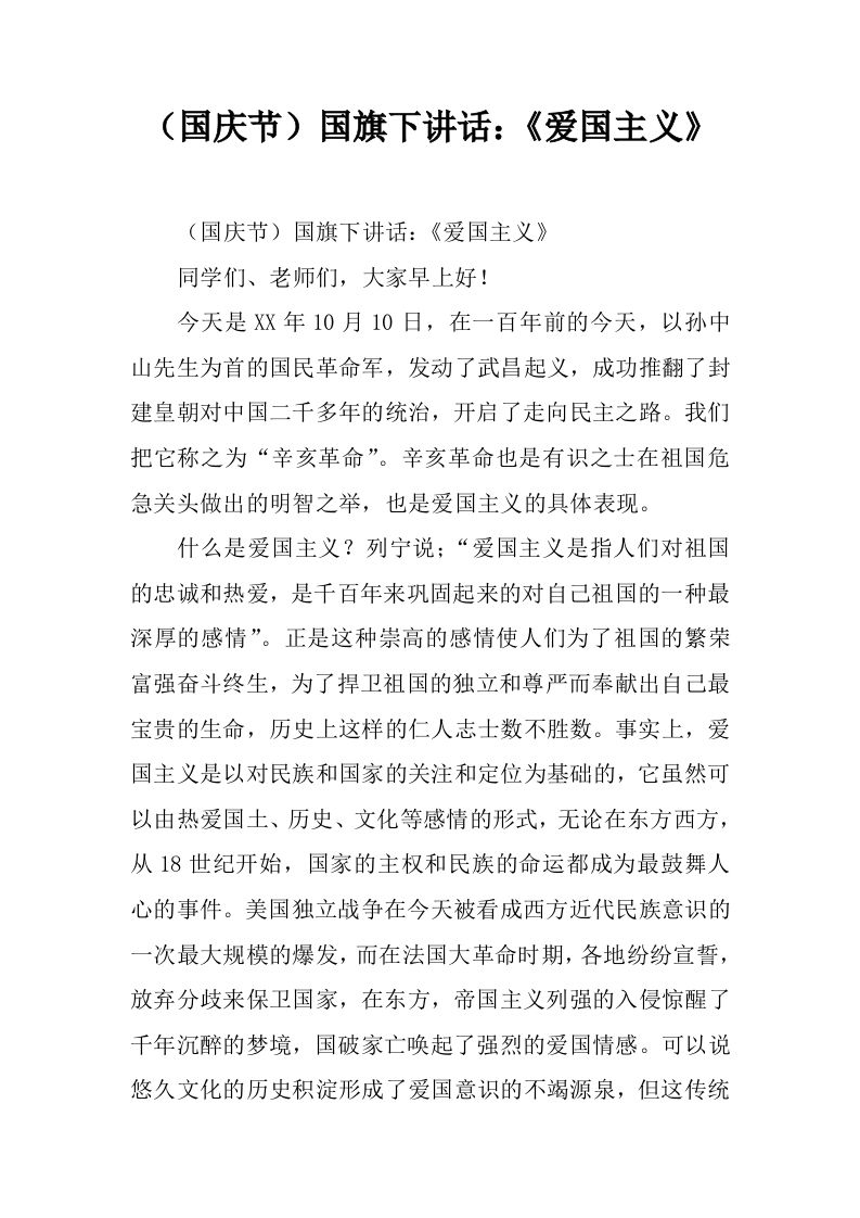 (国庆节)国旗下讲话:《爱国主义》[推荐] 12-18 国旗下讲话 11 ——预览已结束,还剩2页未读——开通会员后可免费下载高清完整文档 资源下载此资源下载价格为15米,VIP免费,请先登录 资源下载下载价格15 米VIP免费请先登录 0 0