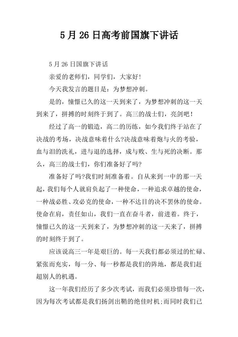 5月26日高考前国旗下讲话[推荐] 12-20 国旗下讲话 14 ——预览已结束,还剩3页未读——开通会员后可免费下载高清完整文档 资源下载此资源下载价格为15米,VIP免费,请先登录 资源下载下载价格15 米VIP免费请先登录 0 0