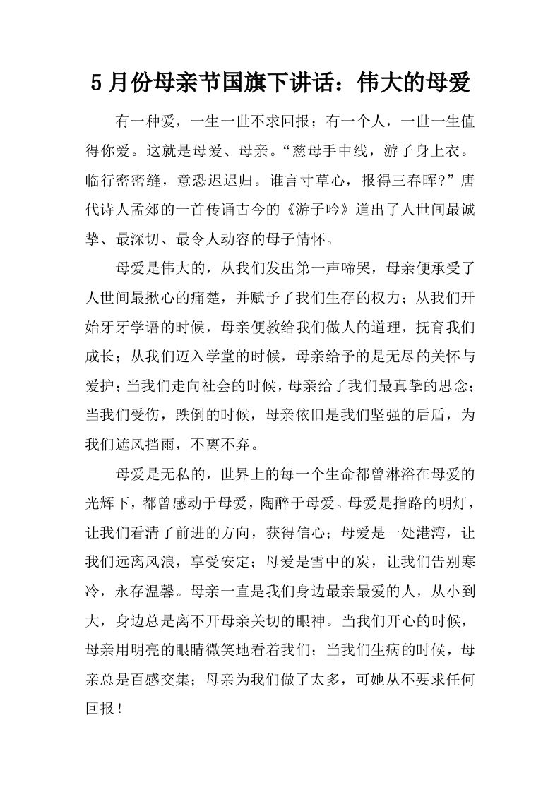 5月份母亲节国旗下讲话:伟大的母爱[推荐] 12-20 国旗下讲话 13 ——预览已结束,还剩1页未读——开通会员后可免费下载高清完整文档 资源下载此资源下载价格为15米,VIP免费,请先登录 资源下载下载价格15 米VIP免费请先登录 0 0