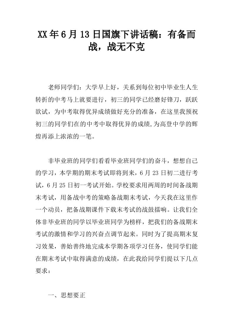 XX年6月13日国旗下讲话稿:有备而战,战无不克[推荐] 12-21 国旗下讲话 11 ——预览已结束,还剩3页未读——开通会员后可免费下载高清完整文档 资源下载此资源下载价格为15米,VIP免费,请先登录 资源下载下载价格15 米VIP免费请先登录 0 0