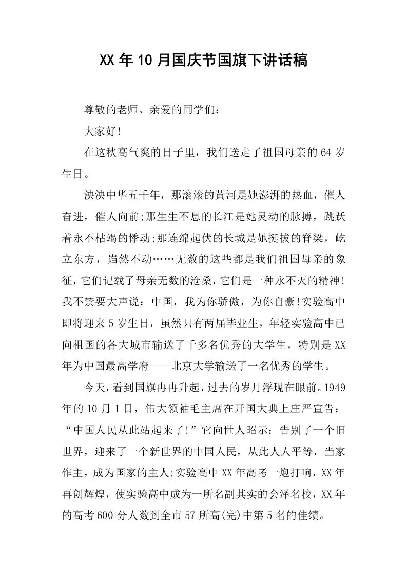 XX年10月国庆节国旗下讲话稿[推荐] 12-21 国旗下讲话 13 ——预览已结束,还剩2页未读——开通会员后可免费下载高清完整文档 资源下载此资源下载价格为15米,VIP免费,请先登录 资源下载下载价格15 米VIP免费请先登录 0 0