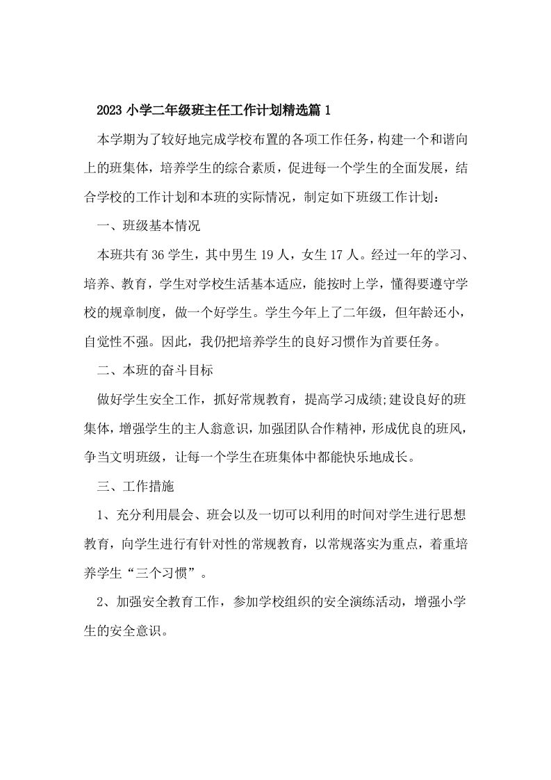 2023小学二年级班主任工作计划精选篇1 12-24 工作计划 9 ——预览已结束,还剩1页未读——开通会员后可免费下载高清完整文档 资源下载此资源下载价格为15米,VIP免费,请先登录 资源下载下载价格15 米VIP免费请先登录 0 0