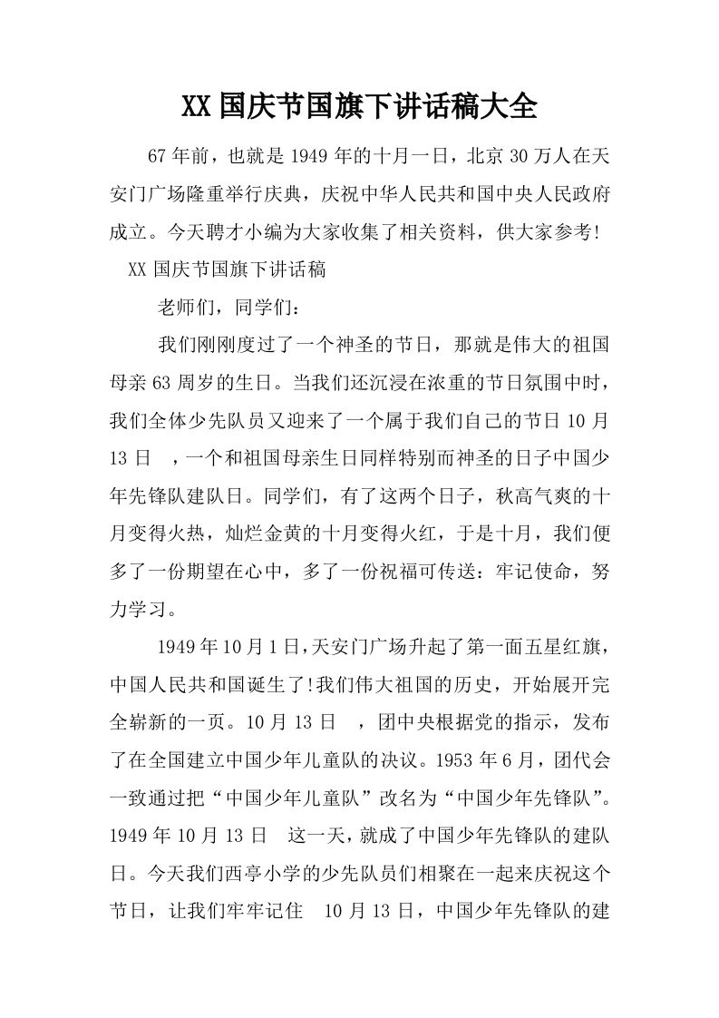 XX国庆节国旗下讲话稿大全[推荐] 12-25 国旗下讲话 13 ——预览已结束,还剩7页未读——开通会员后可免费下载高清完整文档 资源下载此资源下载价格为15米,VIP免费,请先登录 资源下载下载价格15 米VIP免费请先登录 0 0