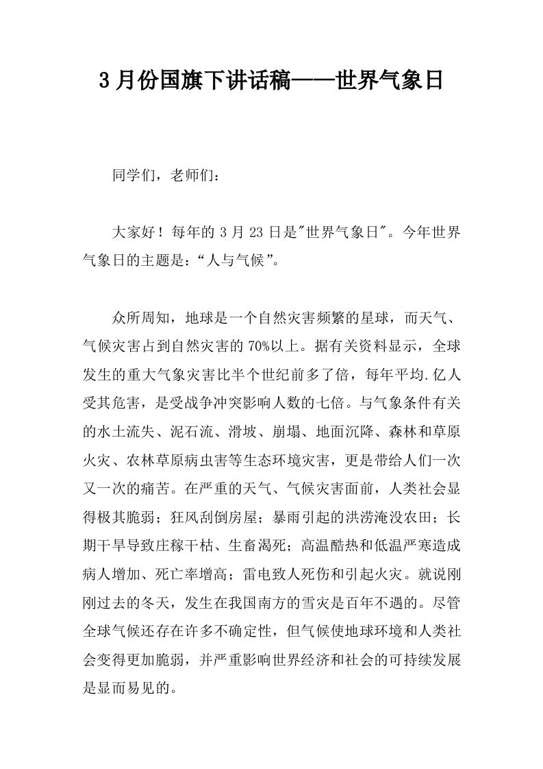 3月份国旗下讲话稿——世界气象日[推荐] 12-26 国旗下讲话 14 ——预览已结束,还剩2页未读——开通会员后可免费下载高清完整文档 资源下载此资源下载价格为15米,VIP免费,请先登录 资源下载下载价格15 米VIP免费请先登录 0 0
