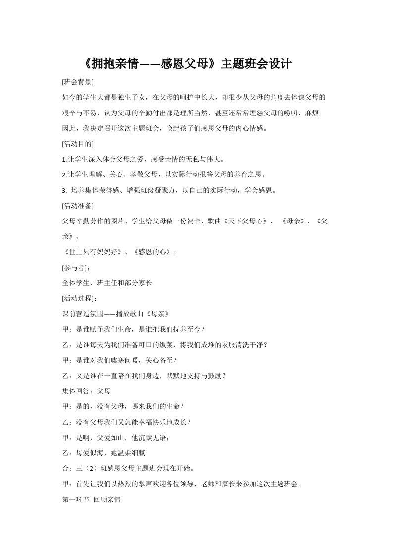 《拥抱亲情——感恩父母》主题班会设计 10-30 班会设计 12 ——预览已结束,还剩10页未读——开通会员后可免费下载高清完整文档 资源下载此资源下载价格为15米,VIP免费,请先登录 资源下载下载价格15 米VIP免费请先登录 0 0