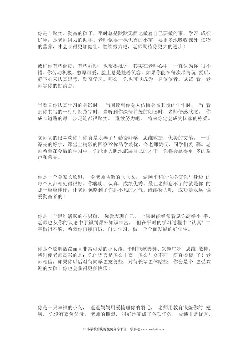 小学生期末班主任评语集锦 12-27 评语 11 ——预览已结束,还剩13页未读——开通会员后可免费下载高清完整文档 资源下载此资源下载价格为15米,VIP免费,请先登录 资源下载下载价格15 米VIP免费请先登录 0 0