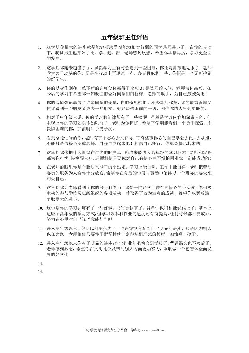 小学五年级班主任评语(原创) 12-27 评语 9 ——预览已结束,还剩1页未读——开通会员后可免费下载高清完整文档 资源下载此资源下载价格为15米,VIP免费,请先登录 资源下载下载价格15 米VIP免费请先登录 0 0