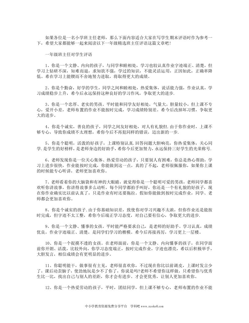 小学一年级班主任评语 12-27 评语 11 ——预览已结束,还剩4页未读——开通会员后可免费下载高清完整文档 资源下载此资源下载价格为15米,VIP免费,请先登录 资源下载下载价格15 米VIP免费请先登录 0 0