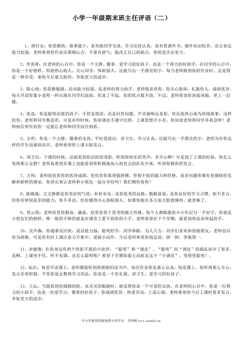 小学一年级期末班主任评语(2) 12-27 评语 14 ——预览已结束,还剩6页未读——开通会员后可免费下载高清完整文档 资源下载此资源下载价格为15米,VIP免费,请先登录 资源下载下载价格15 米VIP免费请先登录 0 0