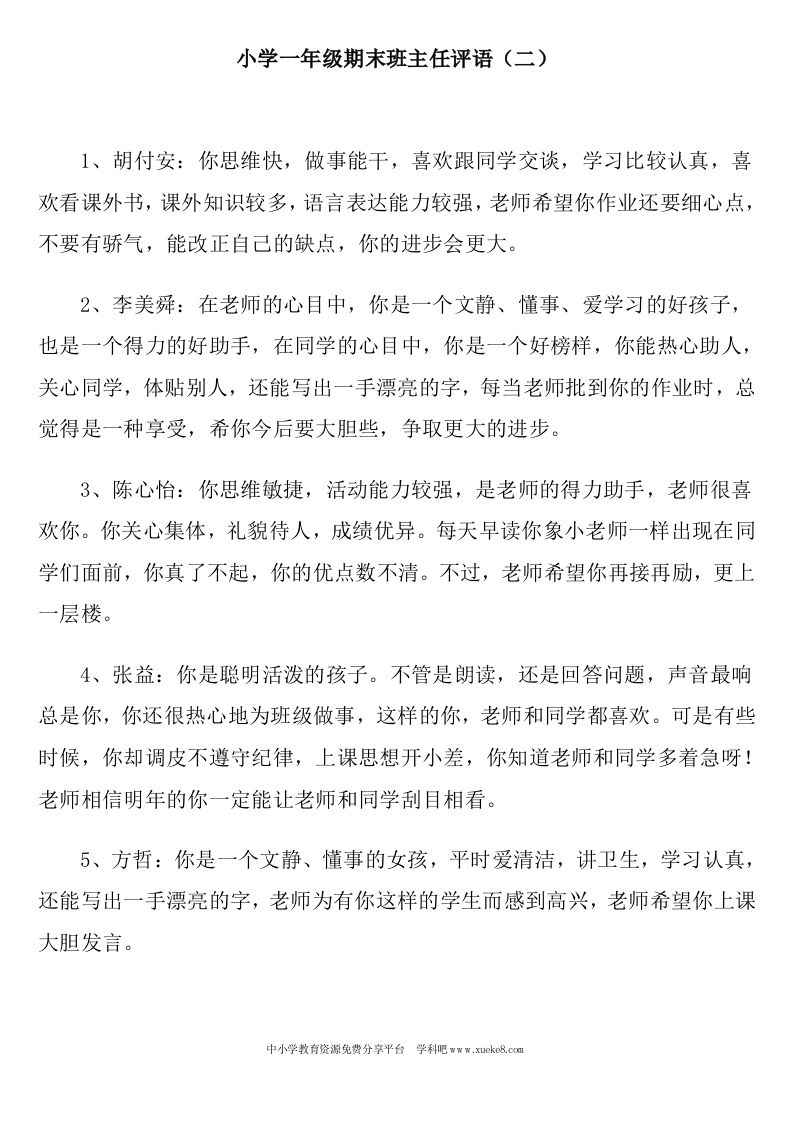 小学一年级期末班主任评语 12-27 评语 9 ——预览已结束,还剩15页未读——开通会员后可免费下载高清完整文档 资源下载此资源下载价格为15米,VIP免费,请先登录 资源下载下载价格15 米VIP免费请先登录 0 0