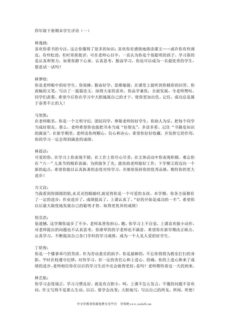 四年级下册期末学生评语 12-28 评语 11 ——预览已结束,还剩10页未读——开通会员后可免费下载高清完整文档 资源下载此资源下载价格为15米,VIP免费,请先登录 资源下载下载价格15 米VIP免费请先登录 0 0