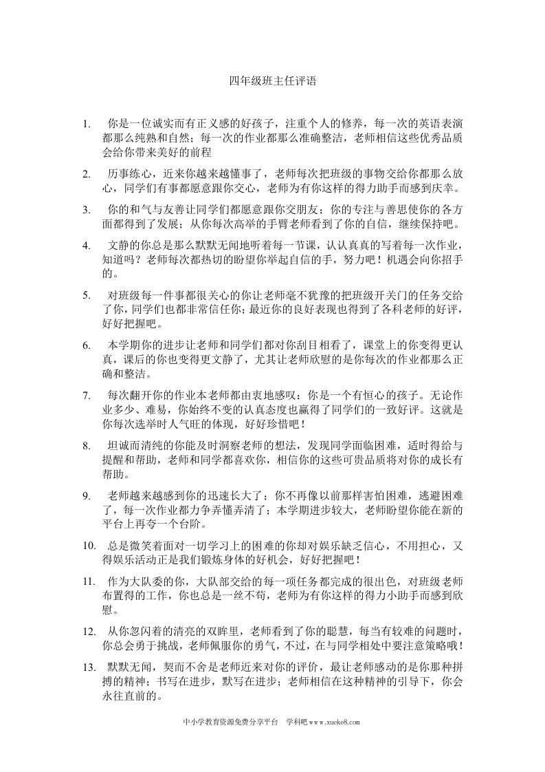 小学四年级班主任评语(原创) 12-28 评语 11 ——预览已结束,还剩3页未读——开通会员后可免费下载高清完整文档 资源下载此资源下载价格为15米,VIP免费,请先登录 资源下载下载价格15 米VIP免费请先登录 0 0