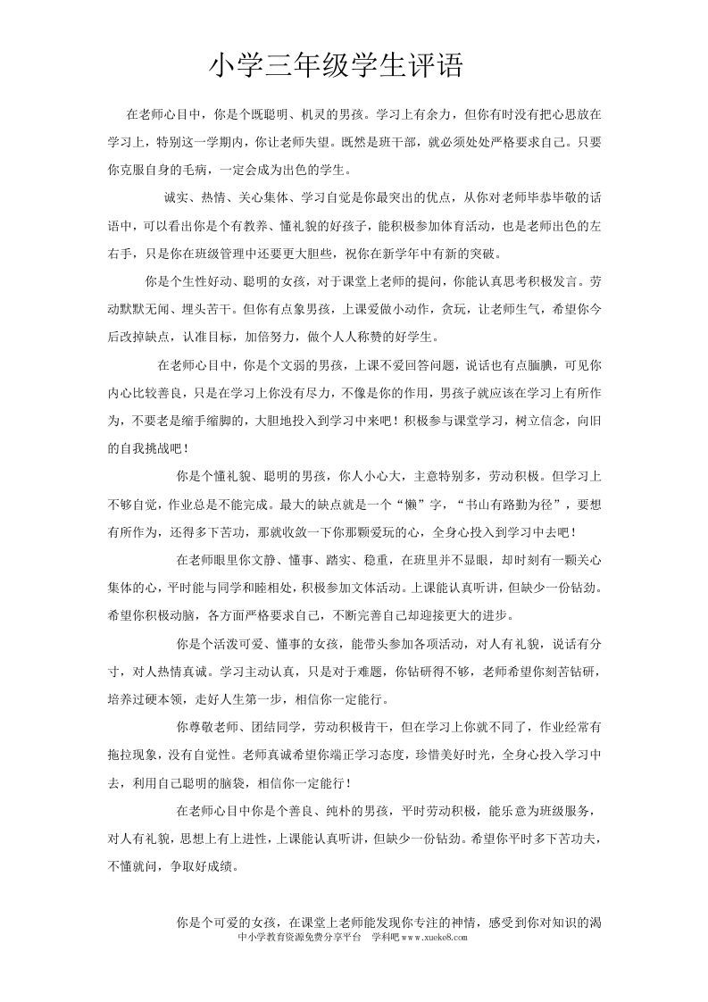小学生三年级期末评语大全[1] 12-28 评语 11 ——预览已结束,还剩20页未读——开通会员后可免费下载高清完整文档 资源下载此资源下载价格为15米,VIP免费,请先登录 资源下载下载价格15 米VIP免费请先登录 0 0
