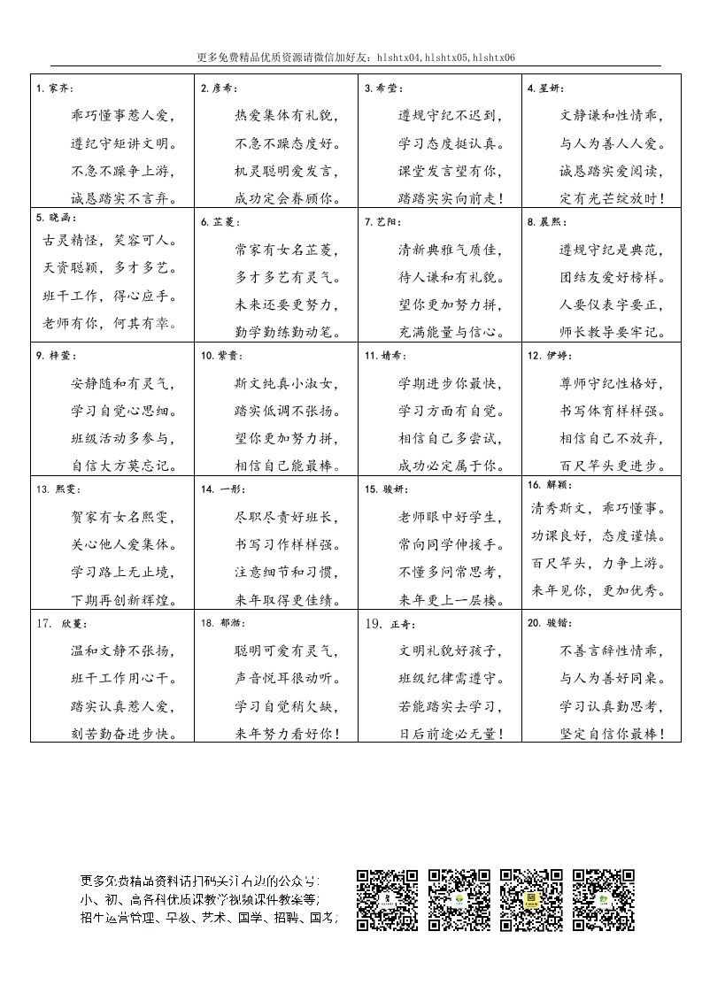 根据学生表现写期末评语“打油诗” 12-29 评语 11 ——预览已结束,还剩2页未读——开通会员后可免费下载高清完整文档 资源下载此资源下载价格为15米,VIP免费,请先登录 资源下载下载价格15 米VIP免费请先登录 0 0