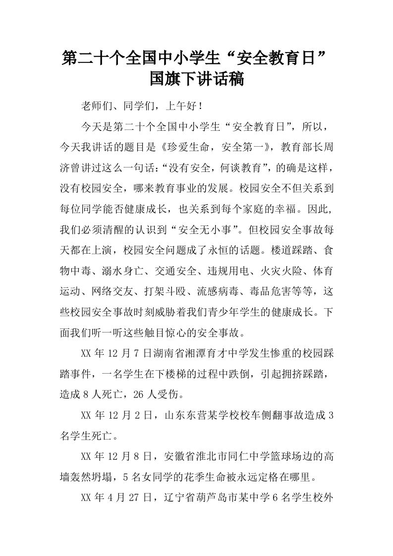 第二十个全国中小学生“安全教育日”国旗下讲话稿[推荐] 12-30 国旗下讲话 11 ——预览已结束,还剩3页未读——开通会员后可免费下载高清完整文档 资源下载此资源下载价格为15米,VIP免费,请先登录 资源下载下载价格15 米VIP免费请先登录 0 0