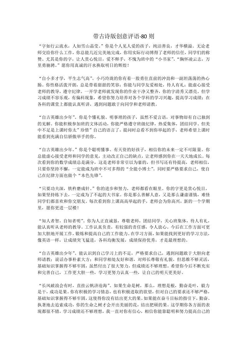 更新02-带古诗版创意评语-80则 01-03 评语 11 ——预览已结束,还剩8页未读——开通会员后可免费下载高清完整文档 资源下载此资源下载价格为15米,VIP免费,请先登录 资源下载下载价格15 米VIP免费请先登录 0 0