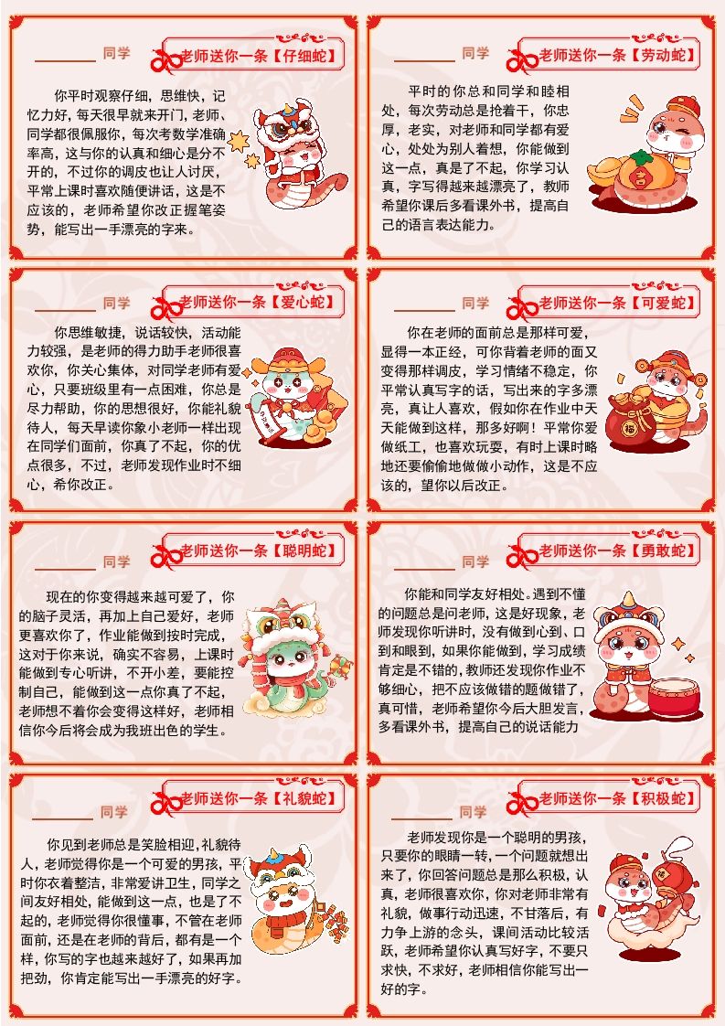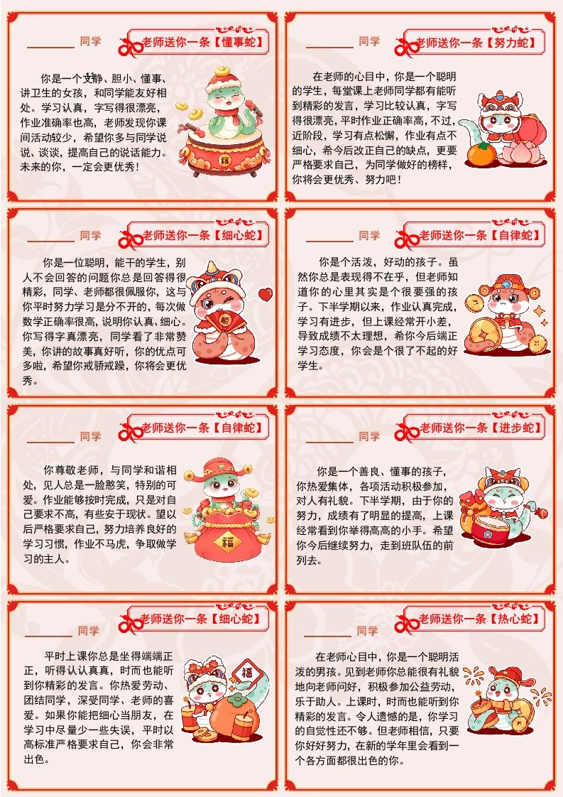 【蛇年】72则创意期末评语(长10宽7cm)-2.0 01-03 评语 11 ——预览已结束,还剩7页未读——开通会员后可免费下载高清完整文档 资源下载此资源下载价格为15米,VIP免费,请先登录 资源下载下载价格15 米VIP免费请先登录 0 0