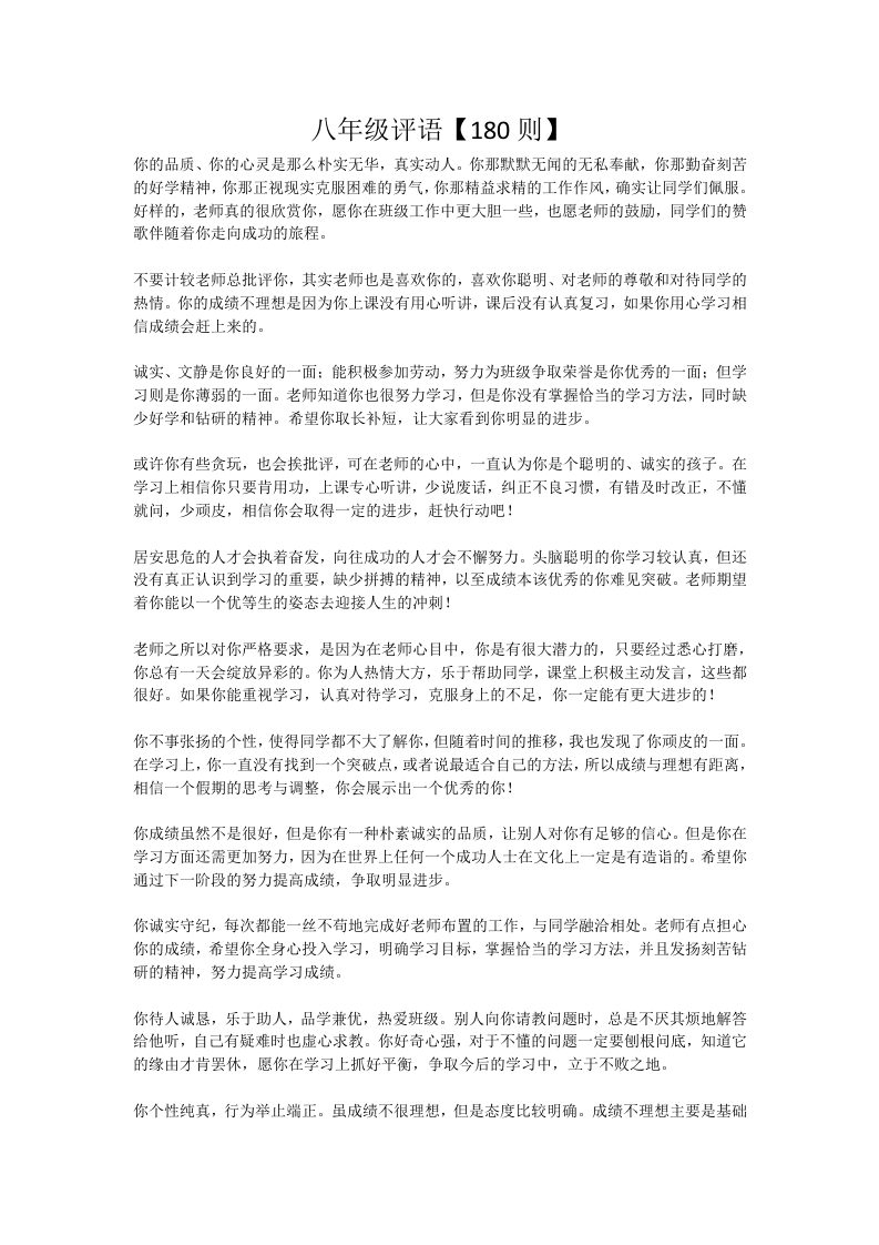 10、八年级评语【180则】 01-06 评语 12 ——预览已结束,还剩16页未读——开通会员后可免费下载高清完整文档 资源下载此资源下载价格为15米,VIP免费,请先登录 资源下载下载价格15 米VIP免费请先登录 0 0