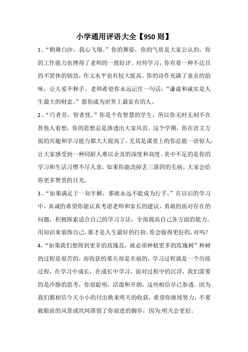 1、小学评语大全【950则】 01-06 评语 11 ——预览已结束,还剩184页未读——开通会员后可免费下载高清完整文档 资源下载此资源下载价格为15米,VIP免费,请先登录 资源下载下载价格15 米VIP免费请先登录 0 0