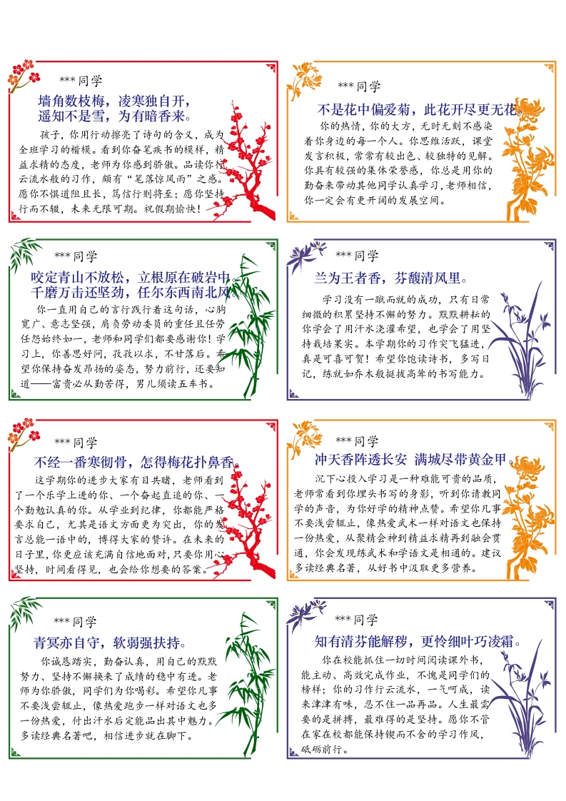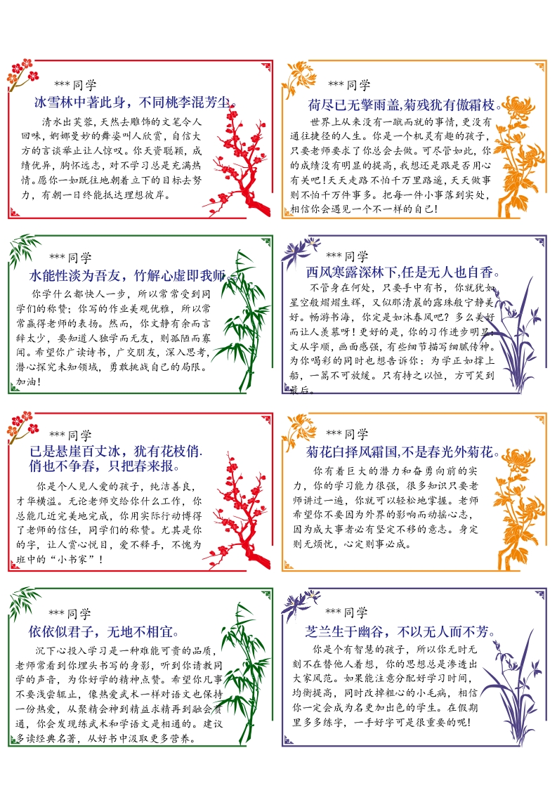 01-64则《梅兰竹菊》评语(小尺寸)(长10宽6cm) 01-06 评语 12 ——预览已结束,还剩6页未读——开通会员后可免费下载高清完整文档 资源下载此资源下载价格为15米,VIP免费,请先登录 资源下载下载价格15 米VIP免费请先登录 0 0