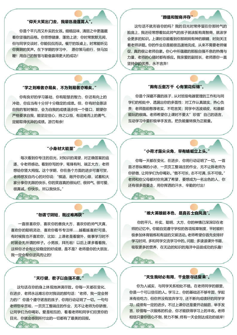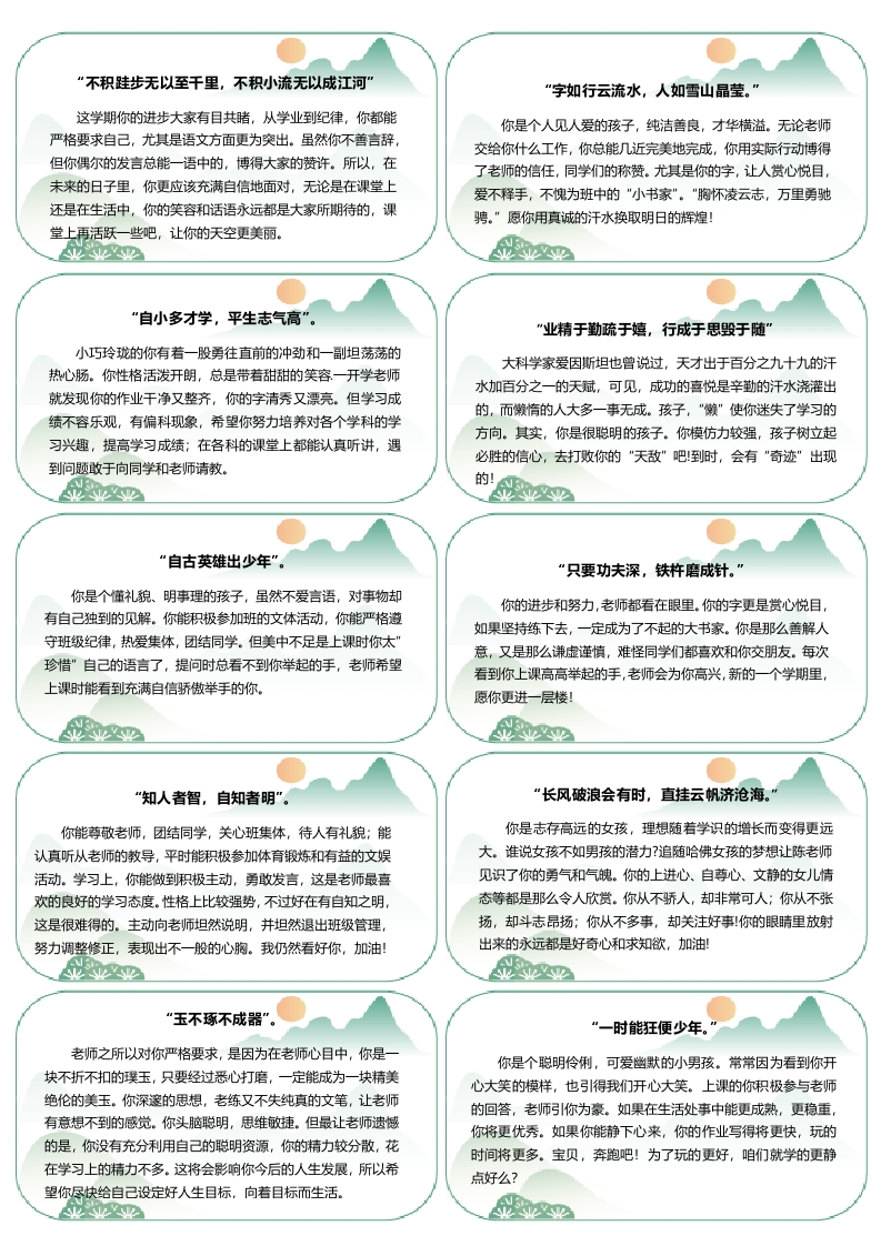 【古诗版】80则创意评语-每页10张-样式1 01-06 评语 11 ——预览已结束,还剩6页未读——开通会员后可免费下载高清完整文档 资源下载此资源下载价格为15米,VIP免费,请先登录 资源下载下载价格15 米VIP免费请先登录 0 0