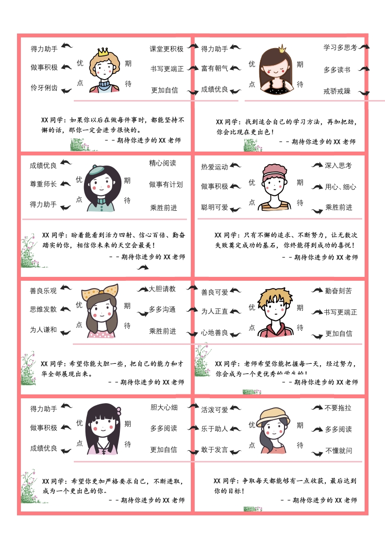 03.创意导图评语word模板(32条)需要使用office2016及以上版本打开 01-08 评语 11 ——预览已结束,还剩3页未读——开通会员后可免费下载高清完整文档 资源下载此资源下载价格为15米,VIP免费,请先登录 资源下载下载价格15 米VIP免费请先登录 0 0