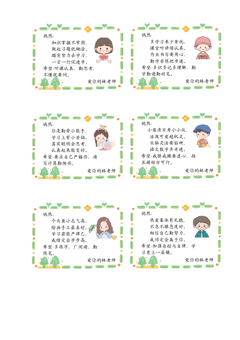 可爱七言评语 01-08 评语 10 ——预览已结束,还剩8页未读——开通会员后可免费下载高清完整文档 资源下载此资源下载价格为15米,VIP免费,请先登录 资源下载下载价格15 米VIP免费请先登录 0 0