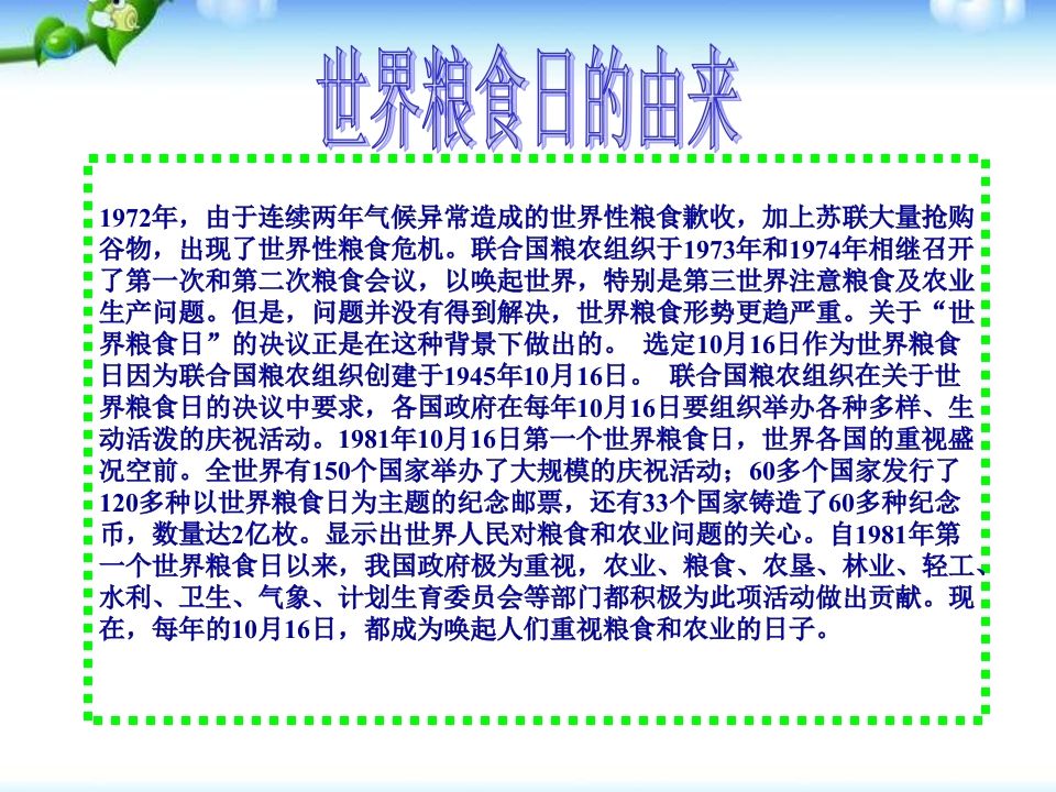 世界粮食日主题班会(1) 01-10 节日主题 12 ——预览已结束,还剩15页未读——开通会员后可免费下载高清完整文档 资源下载此资源下载价格为15米,VIP免费,请先登录 资源下载下载价格15 米VIP免费请先登录 0 0