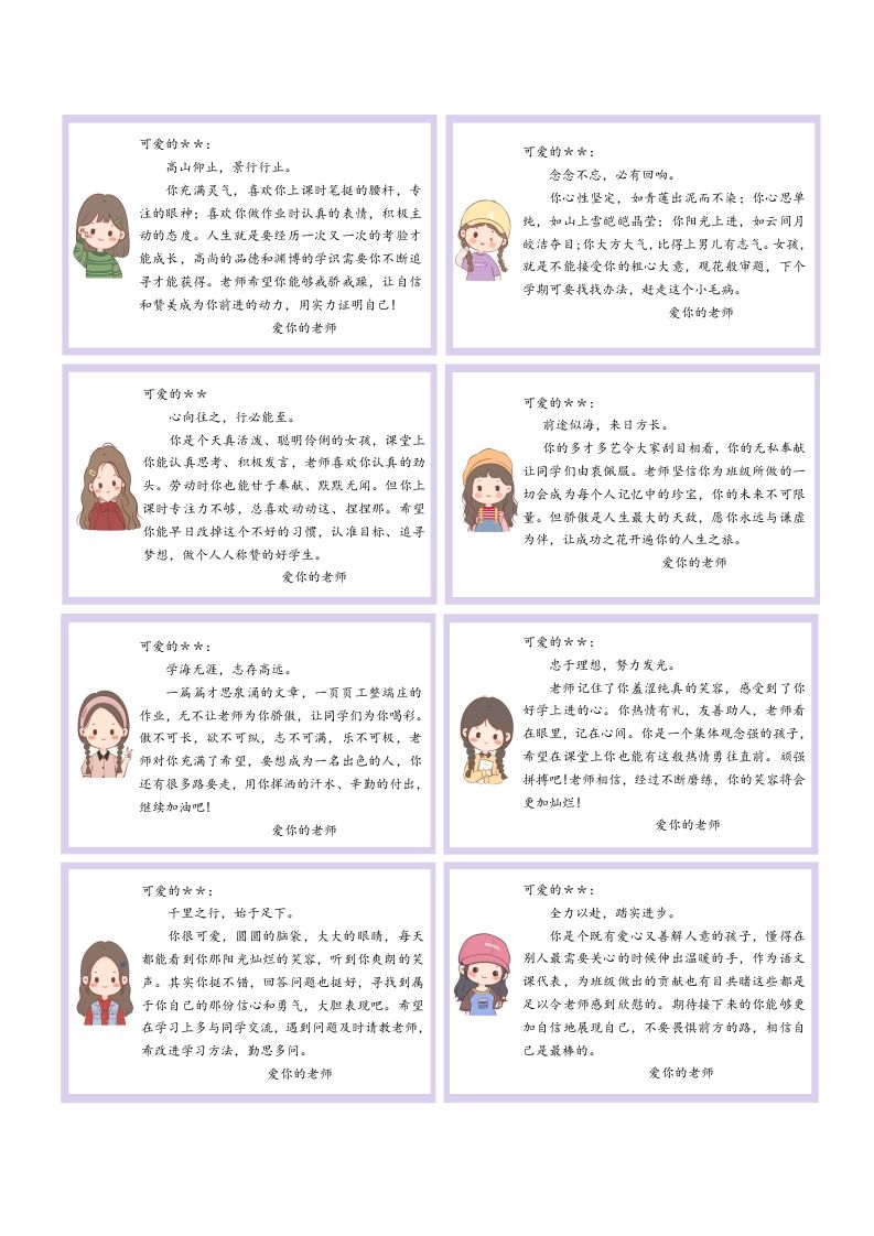 卡通可爱版评语(背景图+文字) 01-18 评语 14 ——预览已结束,还剩6页未读——开通会员后可免费下载高清完整文档 资源下载此资源下载价格为15米,VIP免费,请先登录 资源下载下载价格15 米VIP免费请先登录 0 0