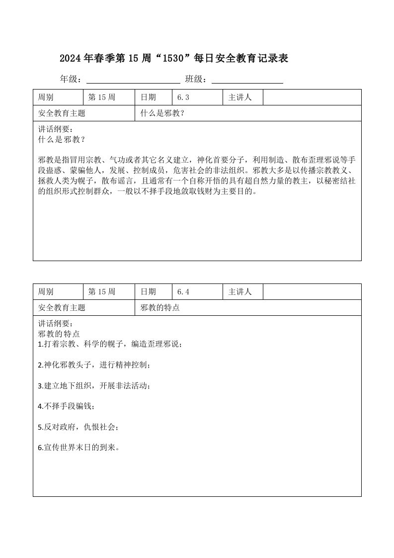 2024年春季第15周“1530”每日安全教育记录表内容资料参考 01-21 管理相关 11 ——预览已结束,还剩3页未读——开通会员后可免费下载高清完整文档 资源下载此资源下载价格为15米,VIP免费,请先登录 资源下载下载价格15 米VIP免费请先登录 0 0