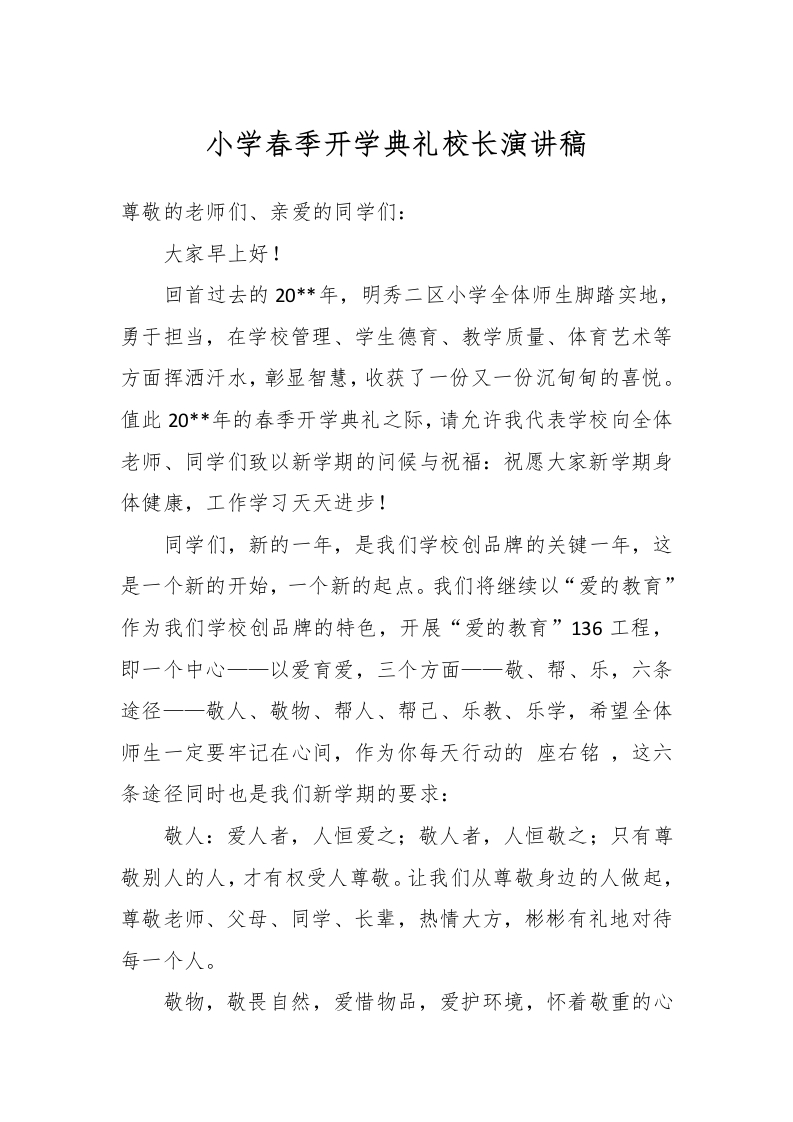 小学春季开学典礼校长演讲稿 02-07 发言稿 11 ——预览已结束,还剩1页未读——开通会员后可免费下载高清完整文档 资源下载此资源下载价格为15米,VIP免费,请先登录 资源下载下载价格15 米VIP免费请先登录 0 0