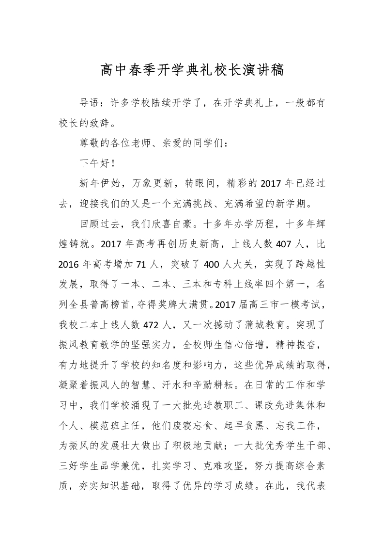 高中春季开学典礼校长演讲稿 02-07 发言稿 13 ——预览已结束,还剩4页未读——开通会员后可免费下载高清完整文档 资源下载此资源下载价格为15米,VIP免费,请先登录 资源下载下载价格15 米VIP免费请先登录 0 0
