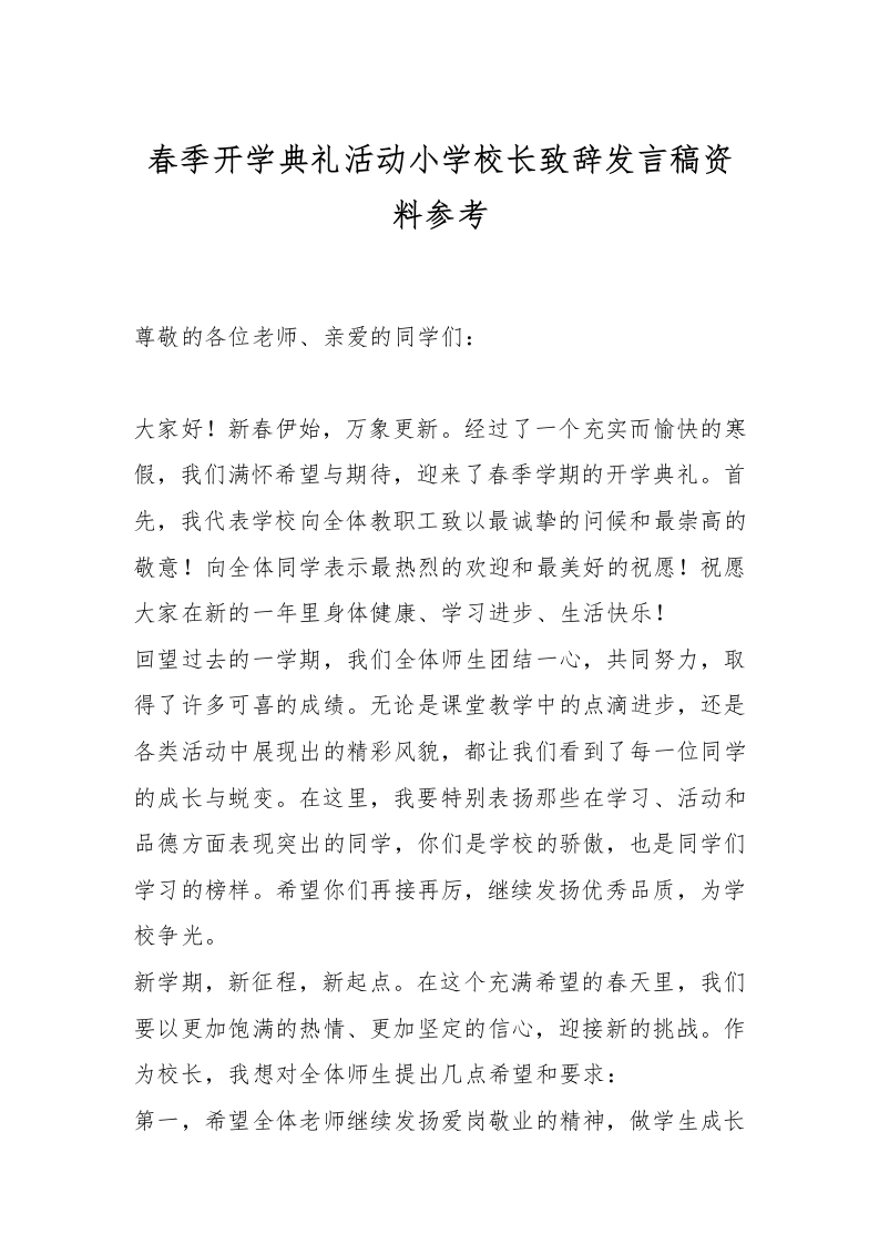 春季开学典礼活动小学校长致辞发言稿资料参考 02-08 发言稿 11 ——预览已结束,还剩1页未读——开通会员后可免费下载高清完整文档 资源下载此资源下载价格为15米,VIP免费,请先登录 资源下载下载价格15 米VIP免费请先登录 0 0