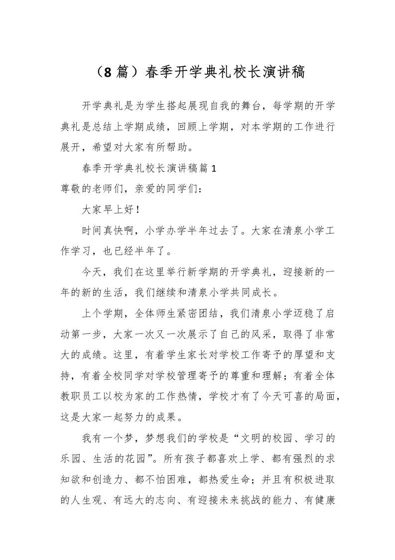 (8篇)春季开学典礼校长演讲稿 02-09 发言稿 13 ——预览已结束,还剩18页未读——开通会员后可免费下载高清完整文档 资源下载此资源下载价格为15米,VIP免费,请先登录 资源下载下载价格15 米VIP免费请先登录 0 0