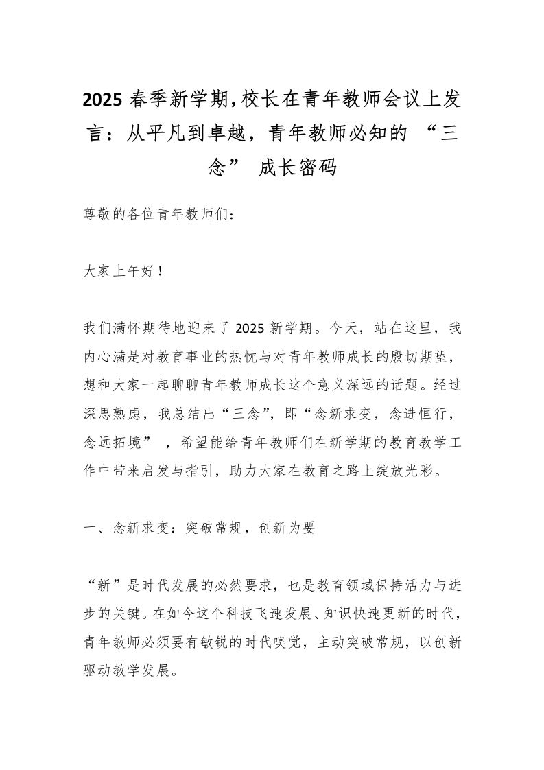 2025春季新学期,校长在青年教师会议上发言:从平凡到卓越,青年教师必知的“三念”成长密码 02-11 发言稿 13 ——预览已结束,还剩3页未读——开通会员后可免费下载高清完整文档 资源下载此资源下载价格为15米,VIP免费,请先登录 资源下载下载价格15 米VIP免费请先登录 0 0
