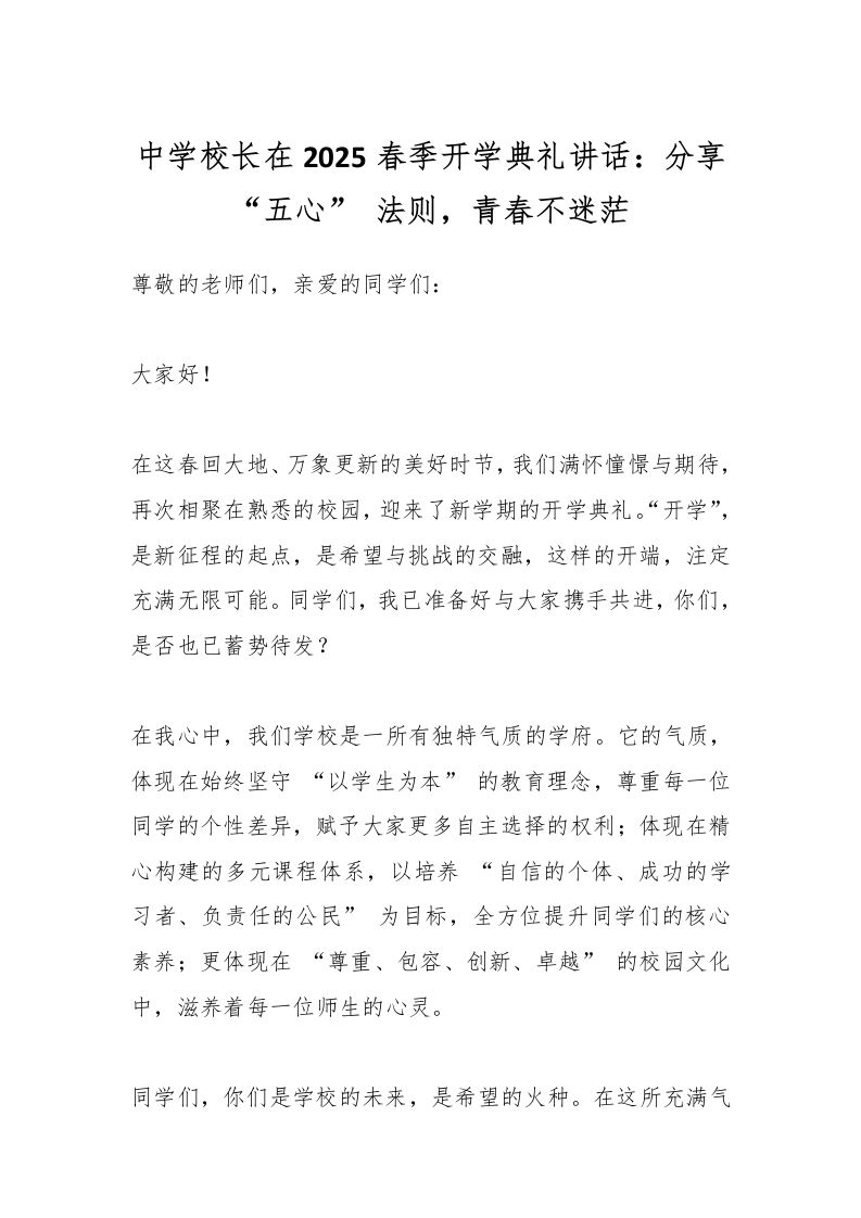 中学校长在2025春季开学典礼讲话:分享“五心”法则,青春不迷茫 02-15 发言稿 11 ——预览已结束,还剩2页未读——开通会员后可免费下载高清完整文档 资源下载此资源下载价格为15米,VIP免费,请先登录 资源下载下载价格15 米VIP免费请先登录 0 0