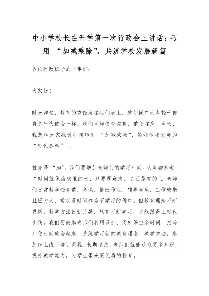 中小学校长在开学第一次行政会上讲话:巧用“加减乘除”,共筑学校发展新篇 02-15 发言稿 11 ——预览已结束,还剩1页未读——开通会员后可免费下载高清完整文档 资源下载此资源下载价格为15米,VIP免费,请先登录 资源下载下载价格15 米VIP免费请先登录 0 0