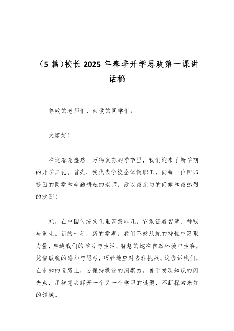 (5篇)校长2025年春季开学思政第一课讲话稿 02-18 发言稿 13 ——预览已结束,还剩28页未读——开通会员后可免费下载高清完整文档 资源下载此资源下载价格为15米,VIP免费,请先登录 资源下载下载价格15 米VIP免费请先登录 0 0