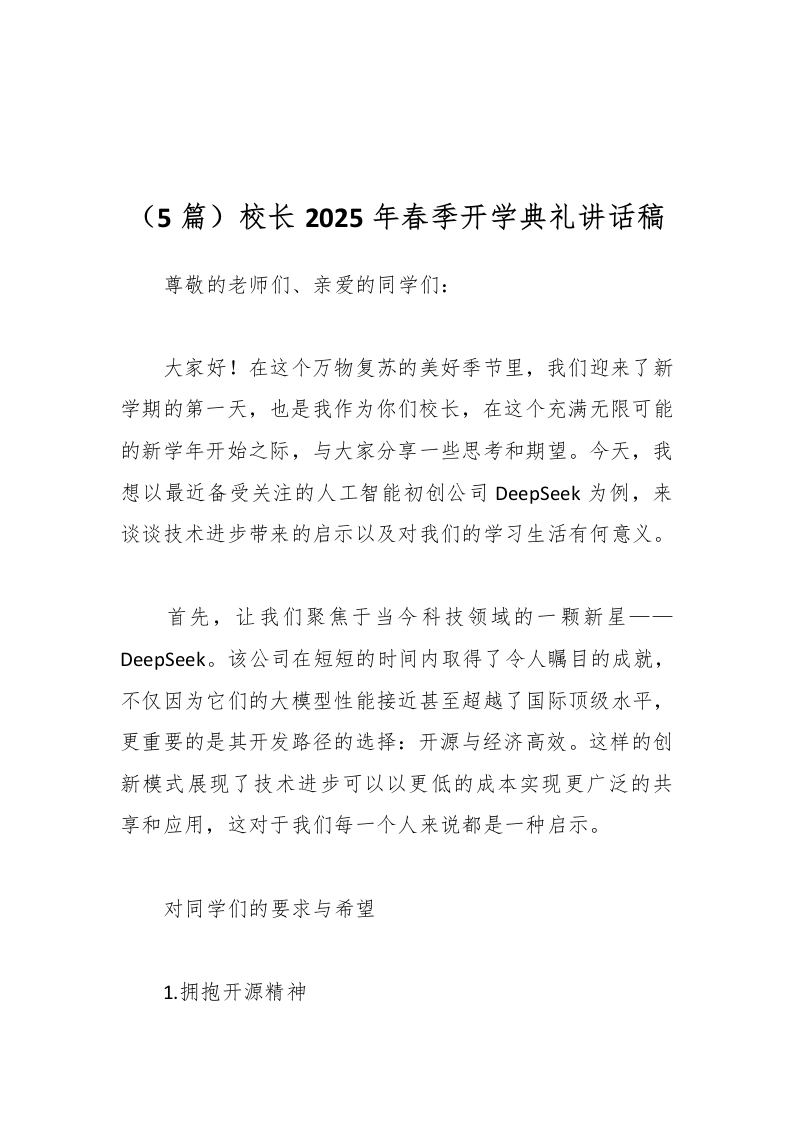 (5篇)校长2025年春季开学典礼讲话稿 02-18 发言稿 11 ——预览已结束,还剩20页未读——开通会员后可免费下载高清完整文档 资源下载此资源下载价格为15米,VIP免费,请先登录 资源下载下载价格15 米VIP免费请先登录 0 0