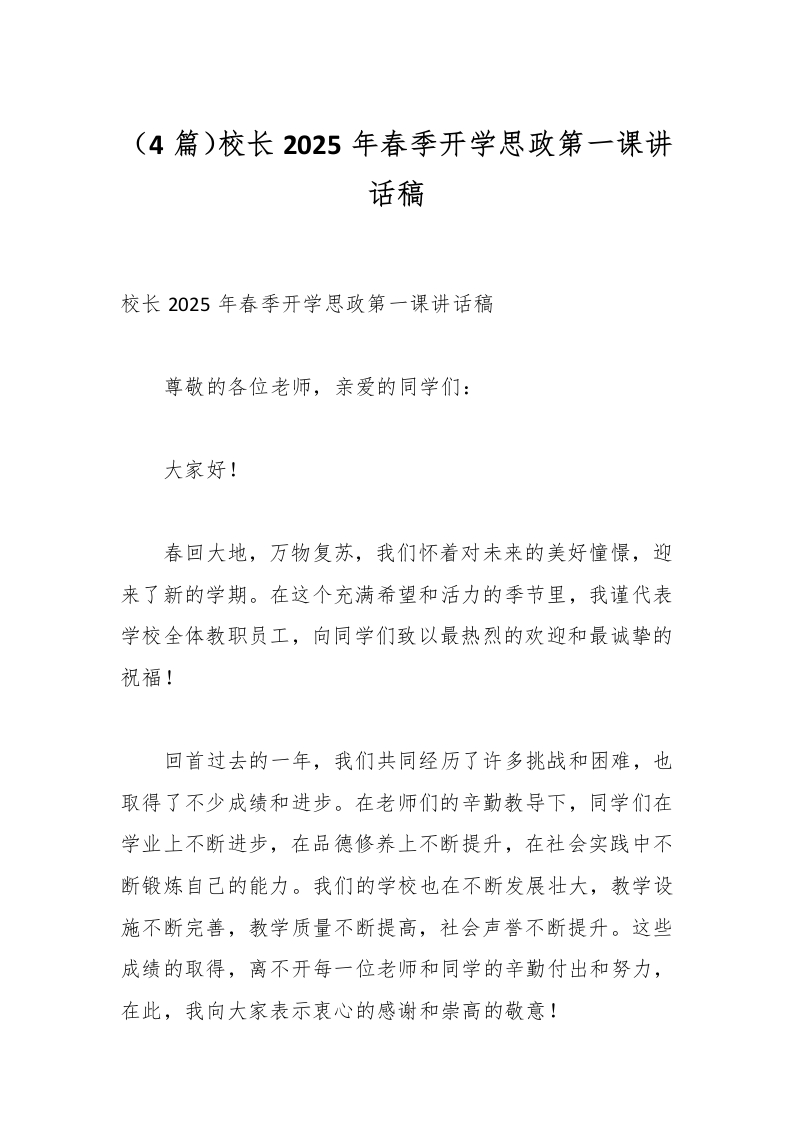 (4篇)校长2025年春季开学思政第一课讲话稿 02-18 发言稿 11 ——预览已结束,还剩20页未读——开通会员后可免费下载高清完整文档 资源下载此资源下载价格为15米,VIP免费,请先登录 资源下载下载价格15 米VIP免费请先登录 0 0