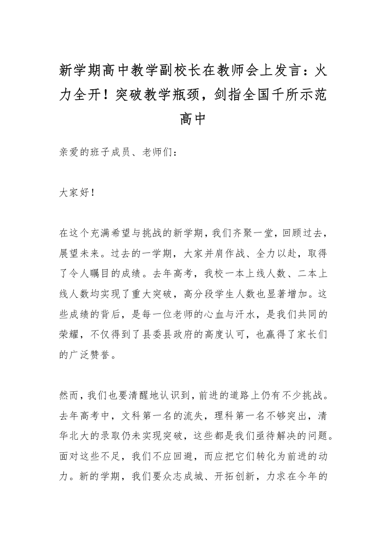 新学期高中教学副校长在教师会上发言:火力全开!突破教学瓶颈,剑指全国千所示范高中 02-19 发言稿 12 ——预览已结束,还剩5页未读——开通会员后可免费下载高清完整文档 资源下载此资源下载价格为15米,VIP免费,请先登录 资源下载下载价格15 米VIP免费请先登录 0 0
