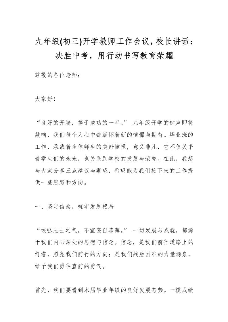 九年级(初三)开学教师工作会议,校长讲话:决胜中考,用行动书写教育荣耀 02-19 发言稿 11 ——预览已结束,还剩4页未读——开通会员后可免费下载高清完整文档 资源下载此资源下载价格为15米,VIP免费,请先登录 资源下载下载价格15 米VIP免费请先登录 0 0