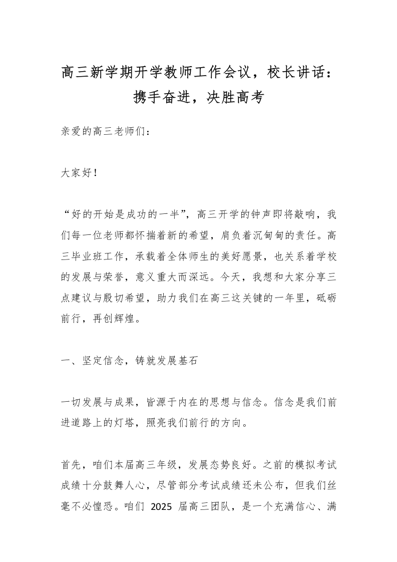 高三新学期开学教师工作会议,校长讲话:携手奋进,决胜高考 02-19 发言稿 11 ——预览已结束,还剩4页未读——开通会员后可免费下载高清完整文档 资源下载此资源下载价格为15米,VIP免费,请先登录 资源下载下载价格15 米VIP免费请先登录 0 0
