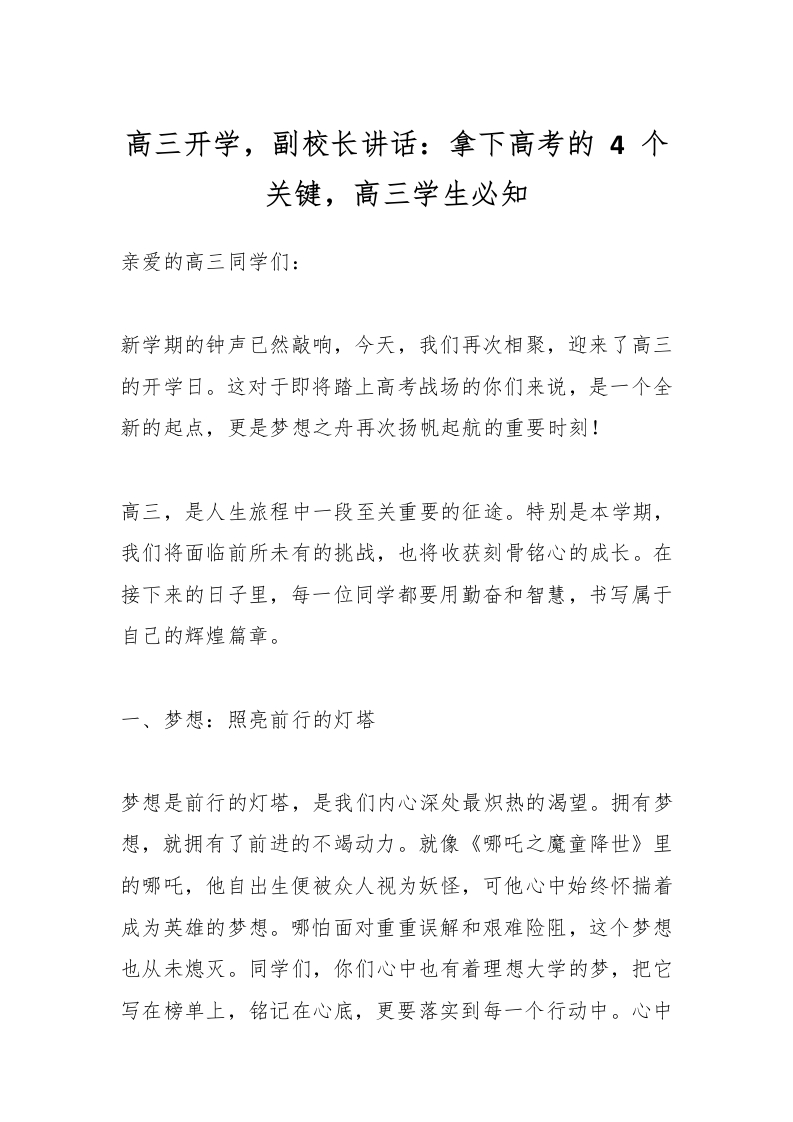 高三开学,副校长讲话:拿下高考的4个关键,高三学生必知 02-19 发言稿 11 ——预览已结束,还剩2页未读——开通会员后可免费下载高清完整文档 资源下载此资源下载价格为15米,VIP免费,请先登录 资源下载下载价格15 米VIP免费请先登录 0 0