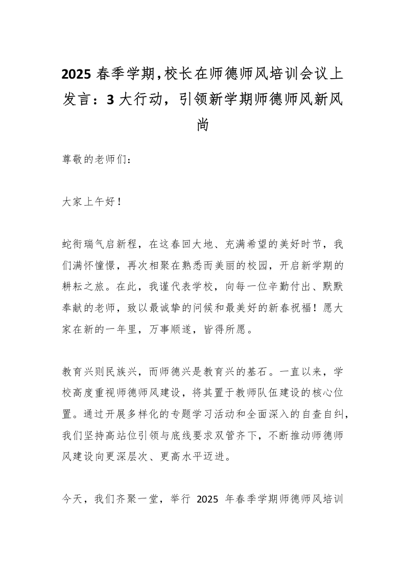 2025春季学期,校长在师德师风培训会议上发言:3大行动,引领新学期师德师风新风尚 02-19 发言稿 12 ——预览已结束,还剩3页未读——开通会员后可免费下载高清完整文档 资源下载此资源下载价格为15米,VIP免费,请先登录 资源下载下载价格15 米VIP免费请先登录 0 0