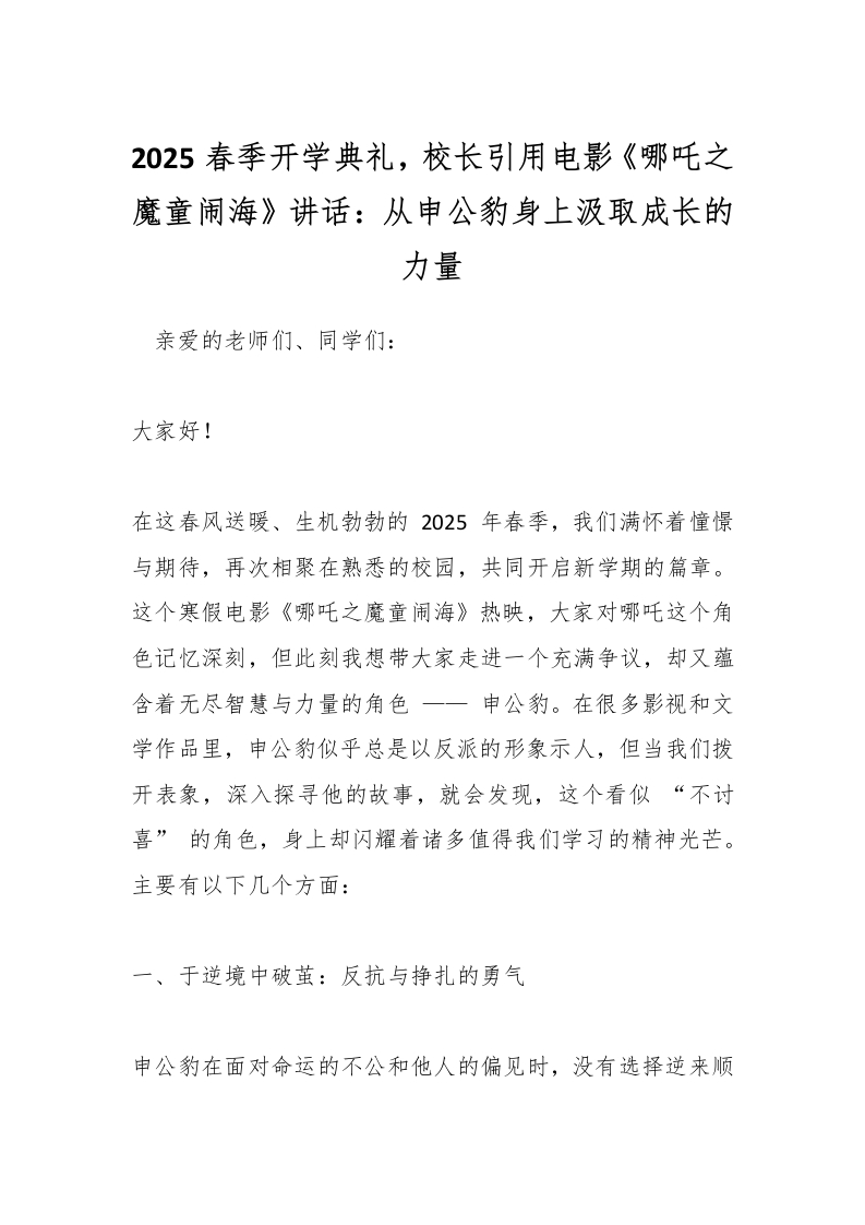 2025春季开学典礼,校长引用电影《哪吒之魔童闹海》讲话:从申公豹身上汲取成长的力量 02-19 发言稿 13 ——预览已结束,还剩3页未读——开通会员后可免费下载高清完整文档 资源下载此资源下载价格为15米,VIP免费,请先登录 资源下载下载价格15 米VIP免费请先登录 0 0
