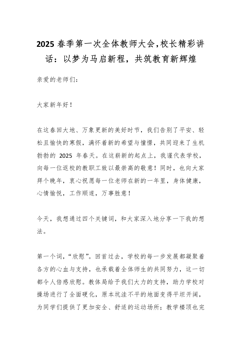 2025春季第一次全体教师大会,校长精彩讲话:以梦为马启新程,共筑教育新辉煌 02-19 发言稿 12 ——预览已结束,还剩5页未读——开通会员后可免费下载高清完整文档 资源下载此资源下载价格为15米,VIP免费,请先登录 资源下载下载价格15 米VIP免费请先登录 0 0