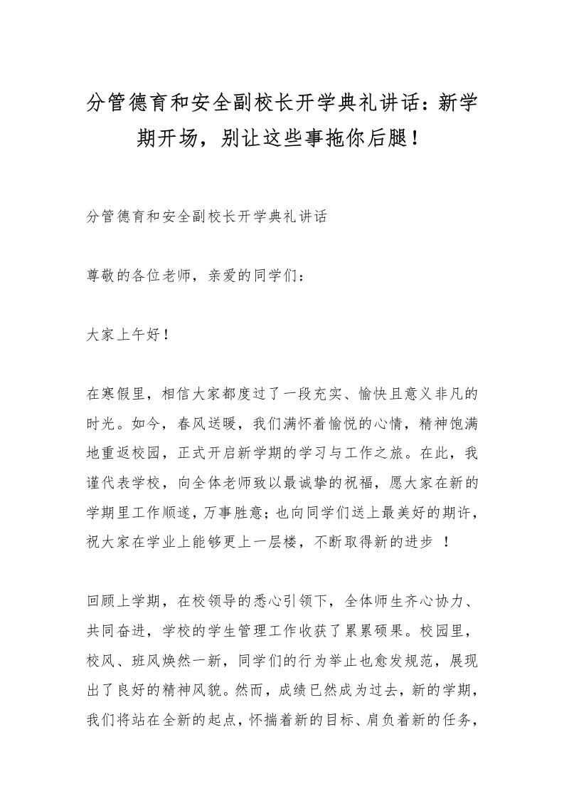 分管德育和安全副校长开学典礼讲话:新学期开场,别让这些事拖你后腿! 02-20 发言稿 13 ——预览已结束,还剩6页未读——开通会员后可免费下载高清完整文档 资源下载此资源下载价格为15米,VIP免费,请先登录 资源下载下载价格15 米VIP免费请先登录 0 0