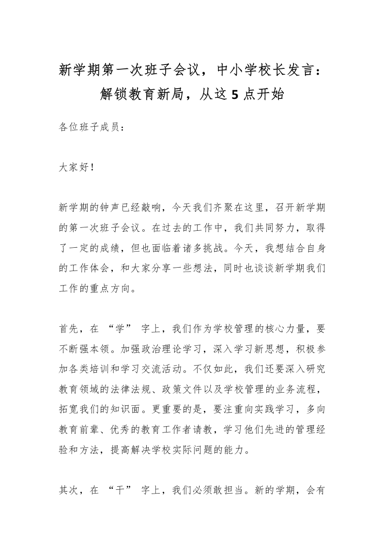 新学期第一次班子会议,中小学校长发言:解锁教育新局,从这5点开始 02-21 发言稿 11 ——预览已结束,还剩3页未读——开通会员后可免费下载高清完整文档 资源下载此资源下载价格为15米,VIP免费,请先登录 资源下载下载价格15 米VIP免费请先登录 0 0